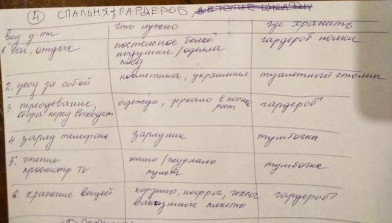1. Описываем все виды деятельности, которые происходят в спальне и что нам для этого нужно