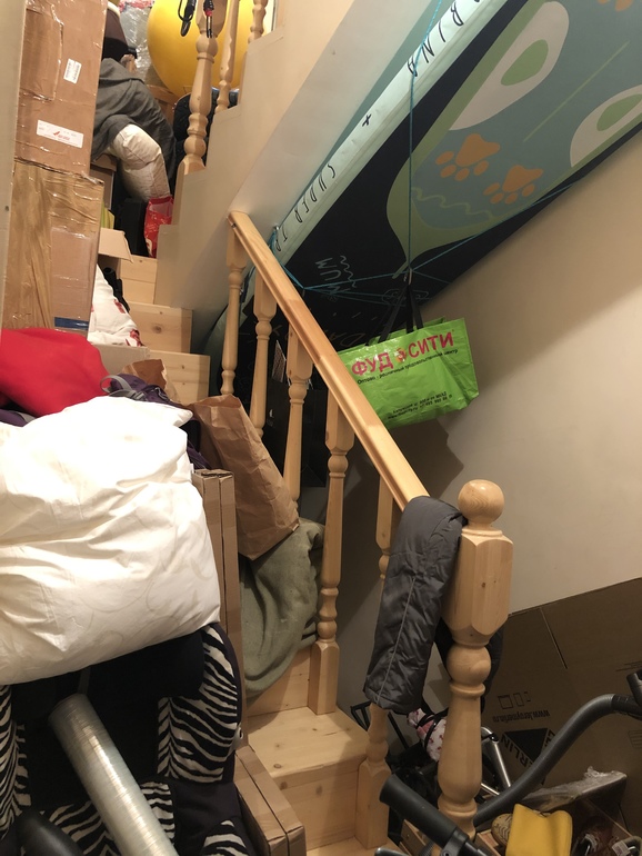 И прихожая в ужасном состоянии, надо теплую одежду увозить в Ярославль, но это просто сложить и все будет лежать, ждать своей очереди...