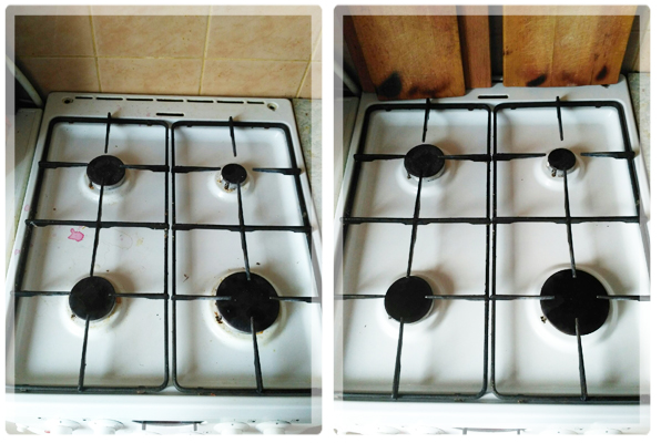 2. Начистим-ка плиту, а то грустно ей рядом с сияющей раковиной ;) Внутри пока не нужно, а вот верх и ручки + решетки - да. Фото не забудьте!