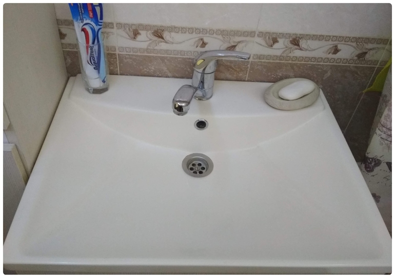 Полочка в ванной практически без изменений, протерла ее со средством от налета известкового