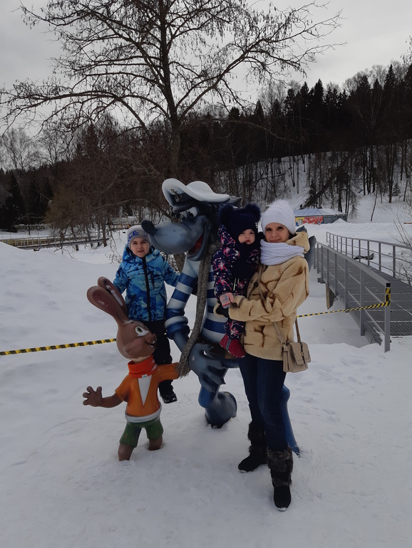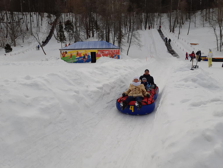 Любим ездить на базу отдыха кататься на горках - видите Аришкины бамбохи, она всегда с нами))