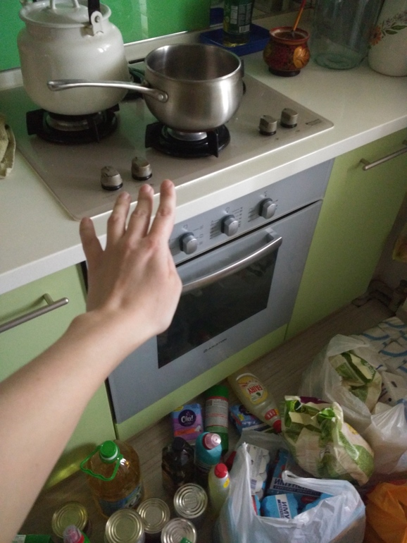 дома меня ждали покупку мужа,пока не разберешь- к плите не доберешься)))