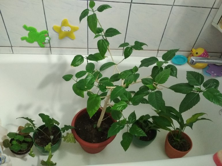 После работы успела поухаживать за комнатными цветами - устроила им душ и оставила в ванной, чтобы стекла вода.