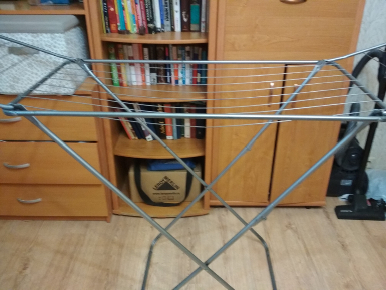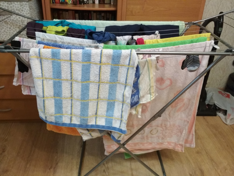 Потом разобрала белье на сушилке, часть погладила, разложила по полкам.