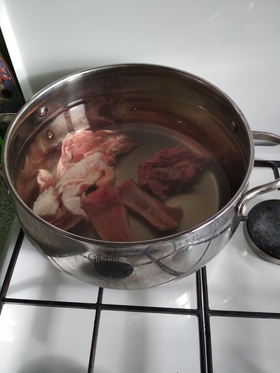 Поставила на плиту кастрюлю с бараниной на шурпу.