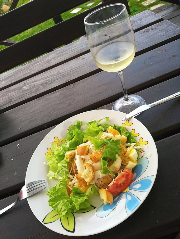Мы часто на ужин едим быстрые салаты аля Цезарь: куча травы, овощи, сухарики и какое-нибудь мясо запечённое: