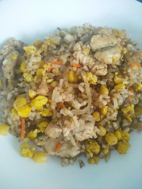 Вот ещё один быстро-рецепт, рис по-тайски. Вариантов много в интернете, суть в том, что овощи и мясо обжариваются, к ним отварной рис, кукурузу, омлет из взбитого яйца, можно соевый соус: