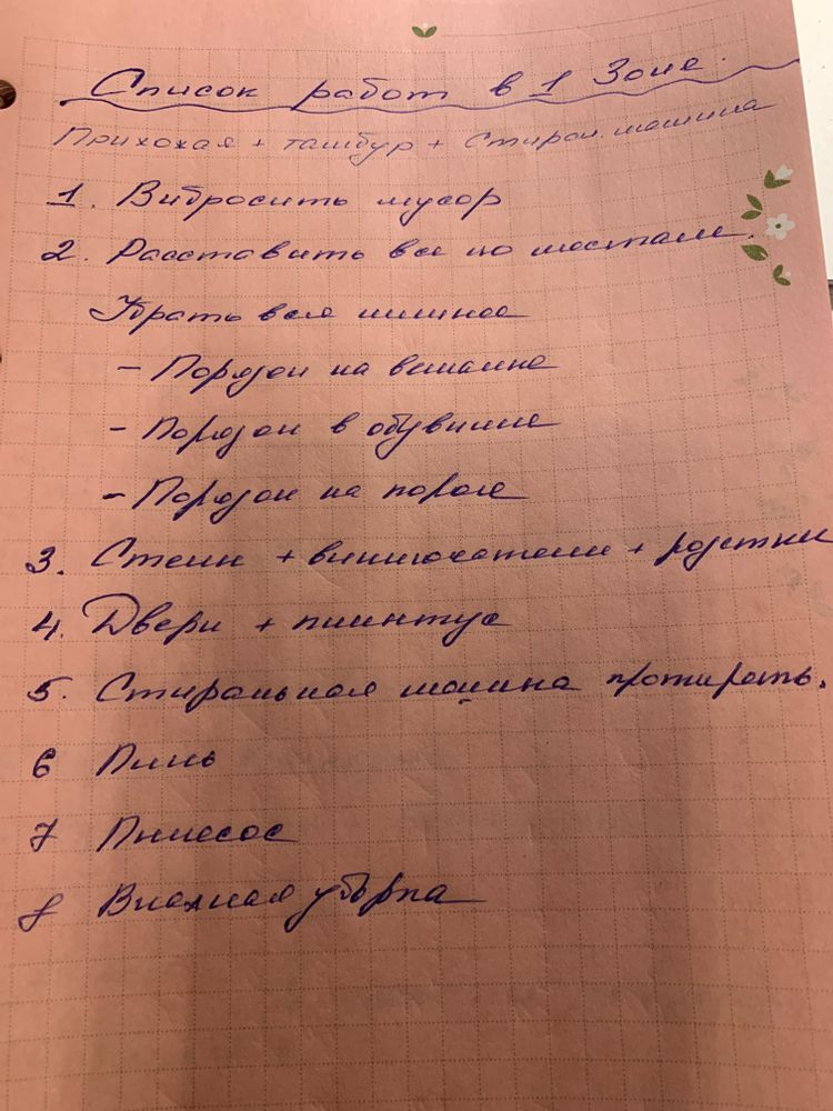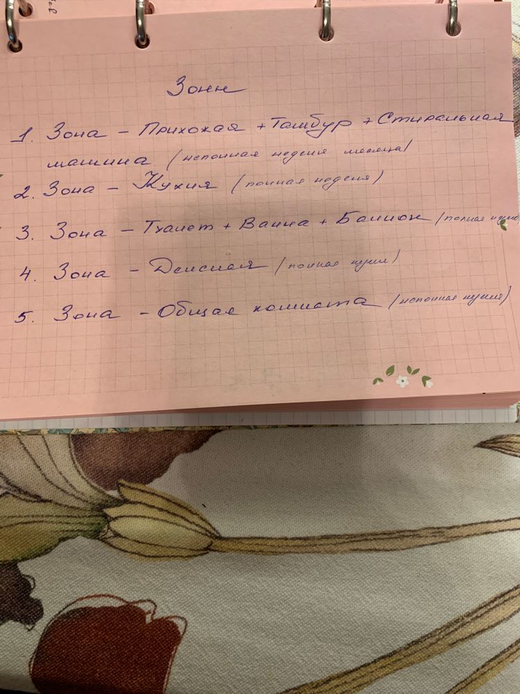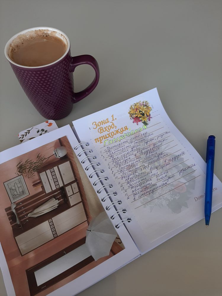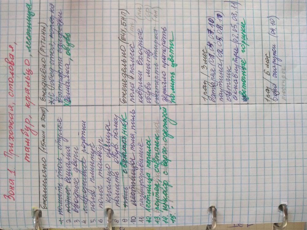 Сегодняшним задание будет расписать дела, которые необходимы для поддержания чистоты в первой зоне: вход, прихожая, столовая.