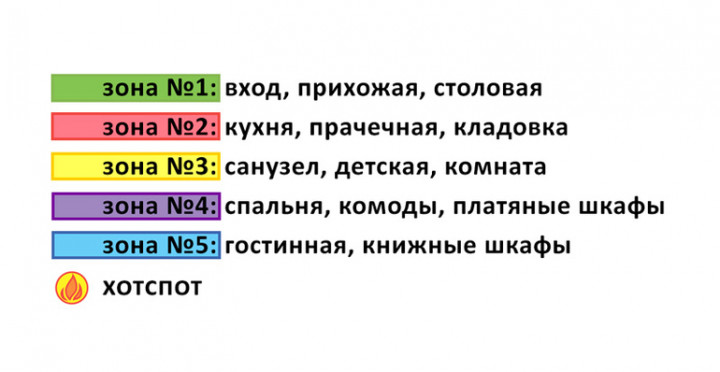 Гостиной как таковой у нас нет,но есть лоджия ( балкон), своеобразная техническая зона, кладовая ,место для сушки белья ,хранения хобби ,инструментов и немного цветов. Работы там много и впихнуть ее лучше в 5 зону. Остальные зоны загружены больше .