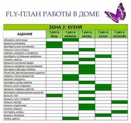 Я сразу приведу готовый пример из FlyLady - ваш список ,безусловно, по итогу будет отличаться, потому что и комнаты у вас другие и мебели и необходимости в них также. Помимо самих действий, нам надо еще определить и их регулярность - ежедневно, еженедельно, ежемесячно, ежеквартально и т.д Ежедневных задач на самом деле не так уж и много выходит.