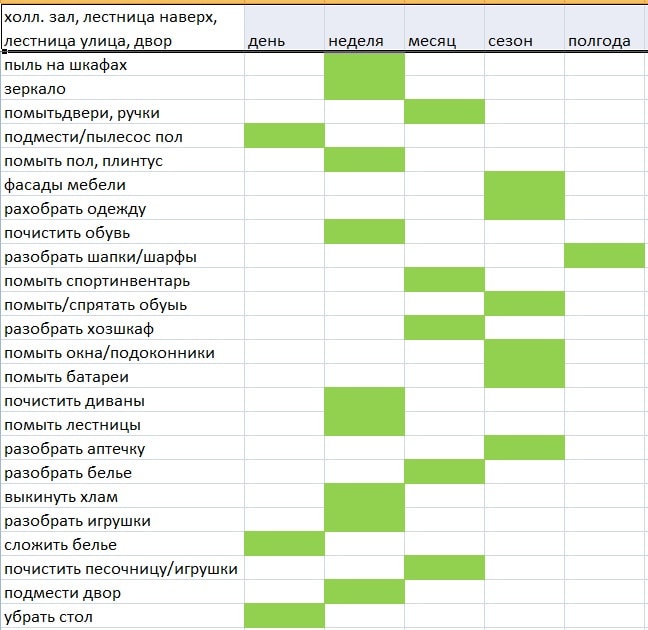 Последите за собой в течении дня и возвращайте все сразу по местам. Увидите, что ХС станут легче. Про то, что их заполняют все кругом, а не только вы - поговорим позже. Итак, наш план 1. УР ( ершик, постель + ежедневные дела зоны 1)