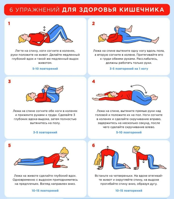 б) Комплекс упражнений, например гимнастику Трюссо-Бергмана, которая включает специальные дыхательные упражнения, повышающие внутриректальное давление и стимулирующие перистальтику.