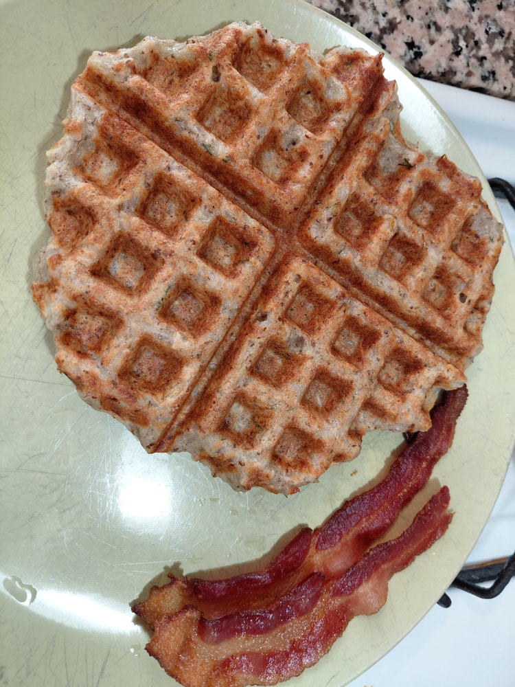 И картофельные вафли с беконом ( очень вдохновилась кабачковыми вафлями, теперь разные рецепты хочу попробовать):