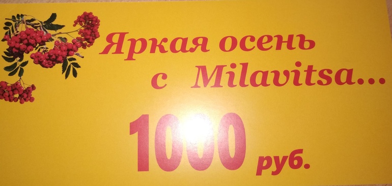 В Ленте за покупку дали сертификат на 1000 руб от Милавицы. Действует до 31 октября. Не знаю действует ли он только в Белгороде или по России, но если узнаете, то могу отправить вам его. Или отдам в Белгороде.