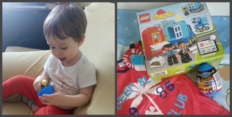 Подарки просто супер. Это и нужная на лето маечка, и лего, и яйцо с машинкой-сюрпризом внутри)