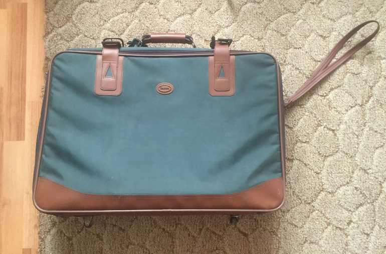 Обмен подаркамив отличном состоянии, на четырёх колёсах, есть кожаная ручка, за которую можно сумку везти, вместительная.