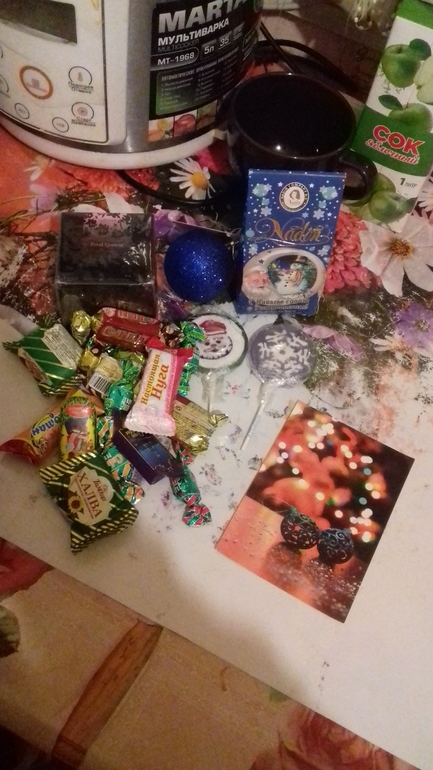 Огромное Спасибо!Девочки снегурочки хотим сказать спасибо. Получила открыточку от Веры, открыточку(к сожалению муж конверт не сохранил отзовитесь кто) и билет русского лото кстати выиграла 120 рублей))) огромное спасибо за билетик, вы перенесли меня на много лет назад ещё в моё детство. И сегодня забрали посылочку от Ксении из Казани. Еле успела сфоткать детям не терпелось начать есть конфеты 😆 Девочки огромнейшее спасибо за ваше искреннее внимание, и да верьте все в чудеса и новый год))))