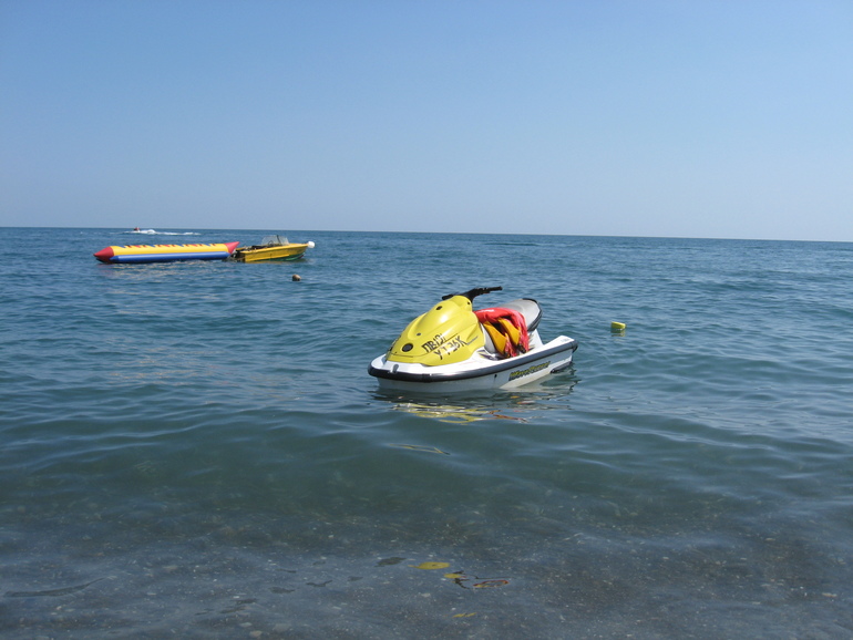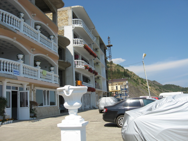 Там один санаторий и он не так близко к морю ,как эти отели (минут 10 идти) .Туда можно ходить гулять,там очень красиво.А около моря можно приехать и найти,что хочется.Мы ездили на машине,она стояла перед отелем.А так наберите в Интернете жилье в Рыбачьем,может и закажите сразу.Я люблю когда свободно на берегу.