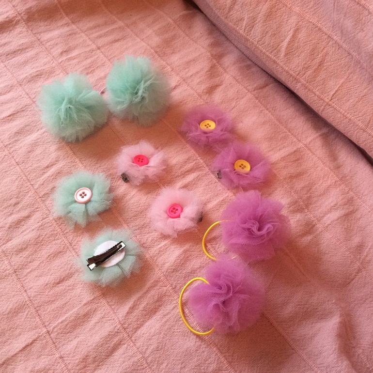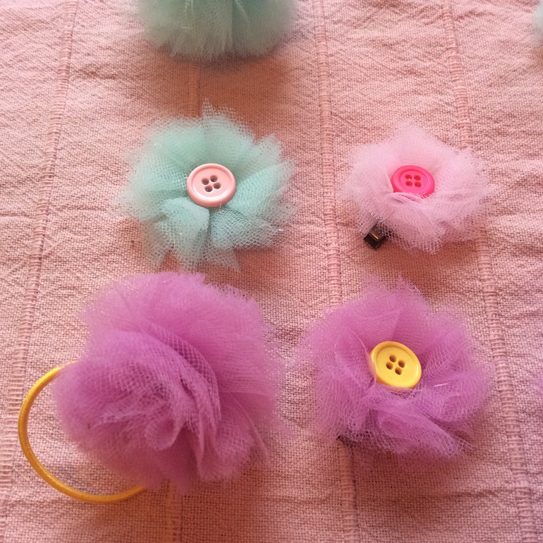 Заколочки и резиночки из фатина.есть еще фатин оранжевого и молочного цветов.возможно изготовление и бОльшего размера,двухцветные,с другой серединкой!в общем на любой вкус и цвет)))