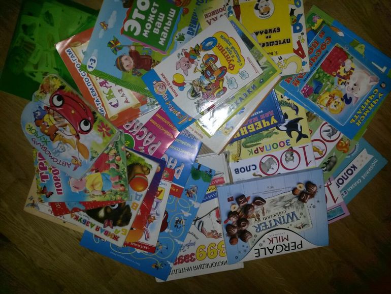 отдала много книг каждому ребенку и вкусненькие конфеты: