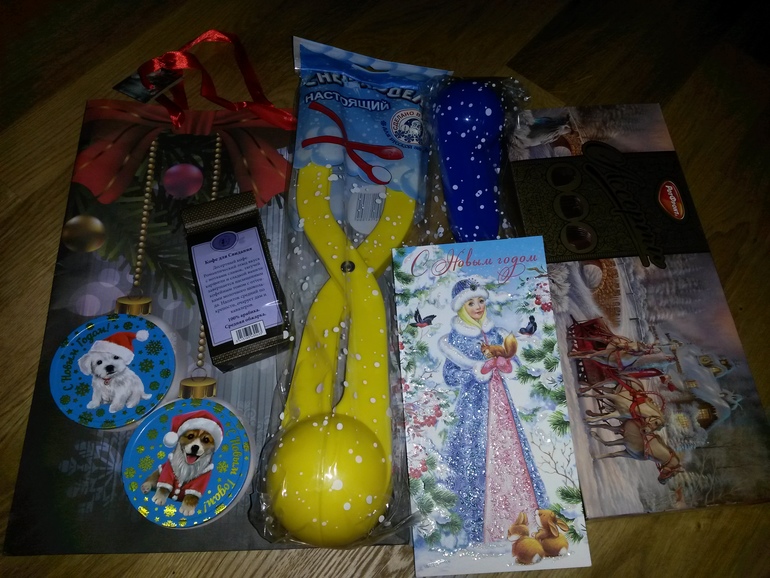 написала очень трогательную открытку, подарила снежколепы и конфетки, ароматный кофе)))))