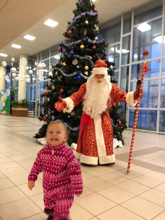 Она его не видела. Дед Мороз опытный. Мелким не показывается) она к папе пошла, а он из за елочки для фото вышел😍