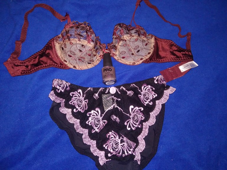 Это будет нижнее бельё лифчик (маркировка 70б) и трусики размера с и профессиональный лак для ногтей.