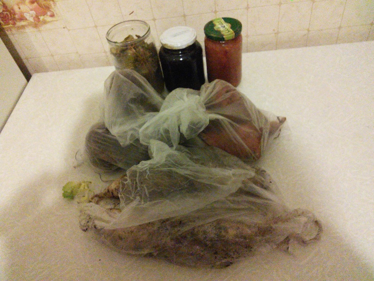 Баночки :огручики,варенье,аджика или закуска.Овощи :ароматная свекла,морковь,кабачки(на фото нет) и опять забыла название овоща,как редис.Все доехало в целости и сохранности!Спасибо тебе Огромное!!!