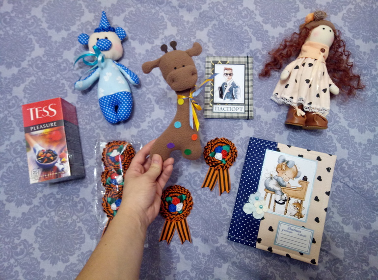 Огромное Спасибо!Давно я мечтала о рукоделочках 😍 Ну и как же тут устоять, когда Новый год, да и выиграли мы такую красоту у Cорочинская Cветлана в цепочке! В общем, пользуясь случаем, дозаказала у Светланы обложку на паспорт, игрушку синенькую пузожителю, брошки к 9 мая (давняя мечта, а то вечно не знаешь как же закрепить ленту красиво).