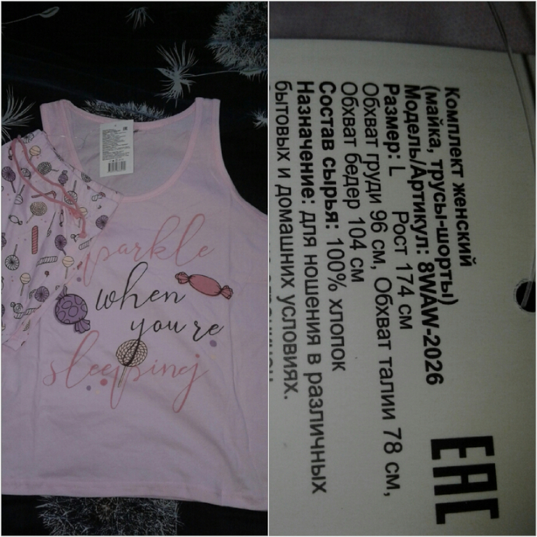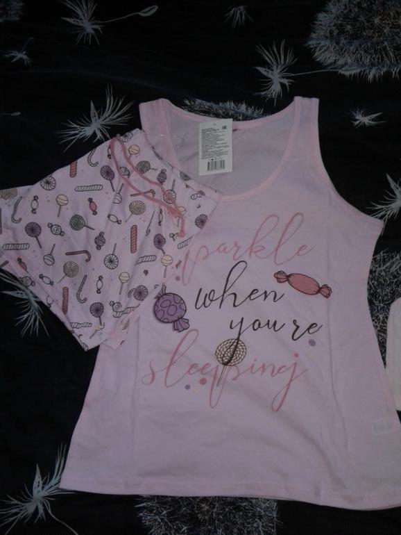 Мне повезло (больше наверное повезло моей пуговке)))), посчастливилось выиграть в этой цепочке у Алёна . Спешу продолжить. Продолжаю опять "пижамной вечеринкой"))) Это детская пижамка 122 рр, женская (майка+шорты) размер L , ну и со сладким за праздники наверное у всех перебор, поэтому это наборчик такой- для ванны.Участвуют Все, кто знаком и готов соблюдать правила цепочек. Почта 200 руб.