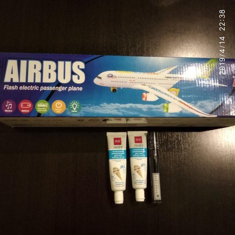 ЦЕПОЧКАВыиграли мы в Цепочке у Lesya чему очень рада. Пока ждём свой подарок спешу продолжить цепочку. Подарком будет музыкальный самолёт, 2 зубные пасты со вкусом мороженого и для мамы объёмная тушь.