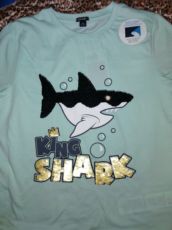 Футболка р.138-143см (думаю можно от роста 132см) с пайетками ( меняет цвет рисунка).