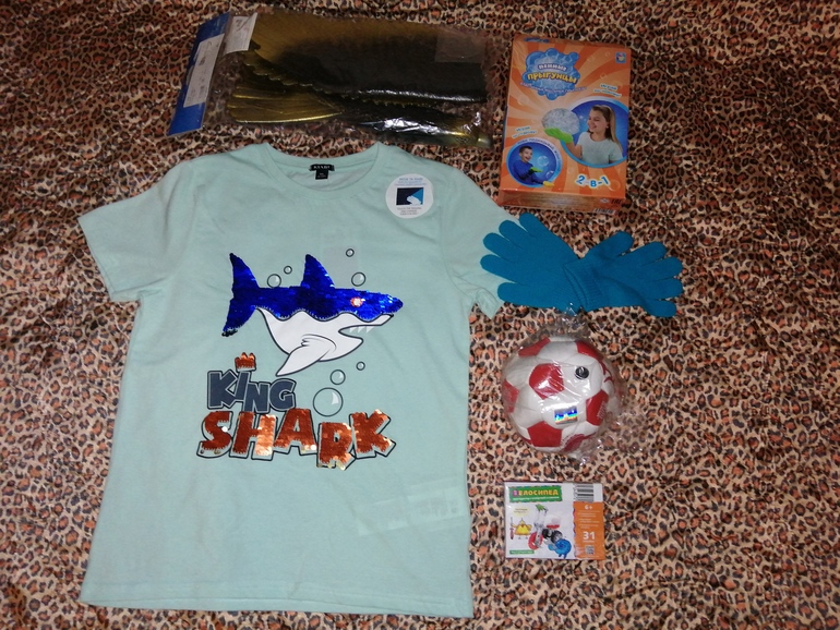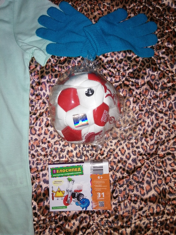 Мыльные пузыри прыгунцы (с трикотажными перчатками) Футбольный маленький мячик. Металлический конструктор "велосипед".