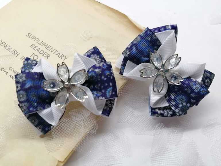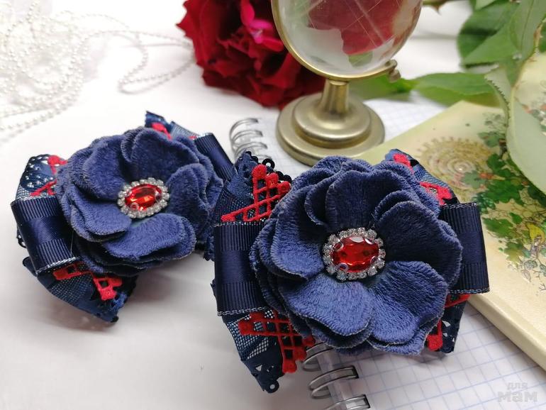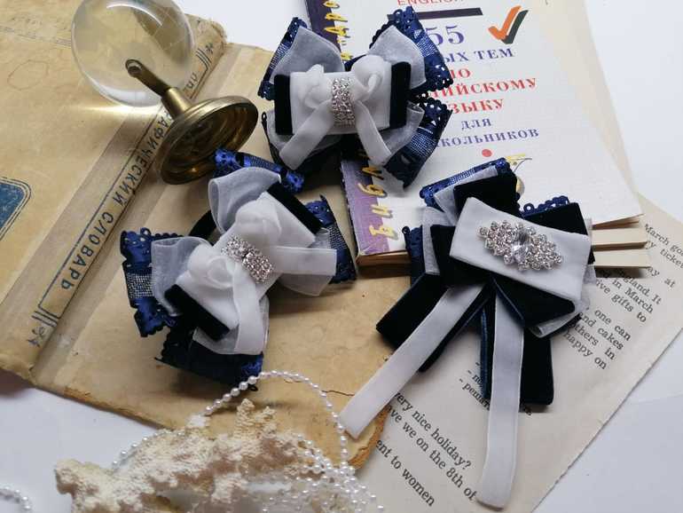 1) Нарядный набор из бархата, органзы и ювелирных серединок. Под темно-синюю форму.