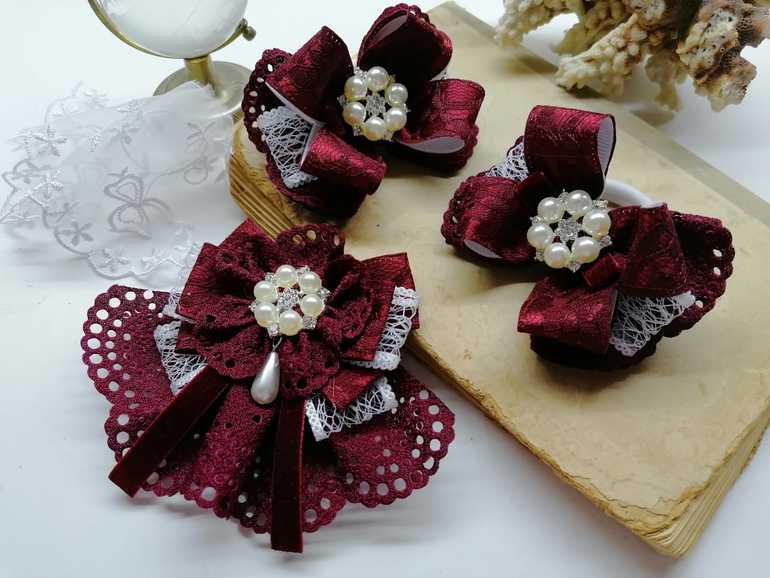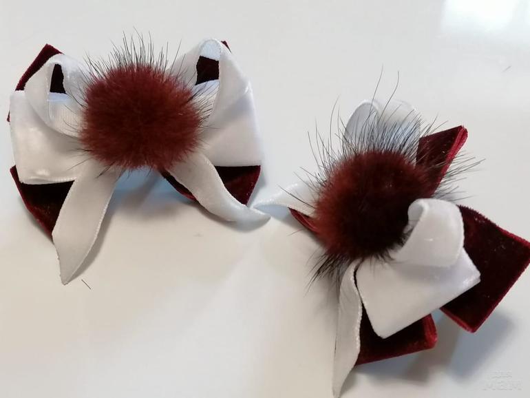 6) Бархатные бантики с норочкой. Бордовая форма. Цена 400р