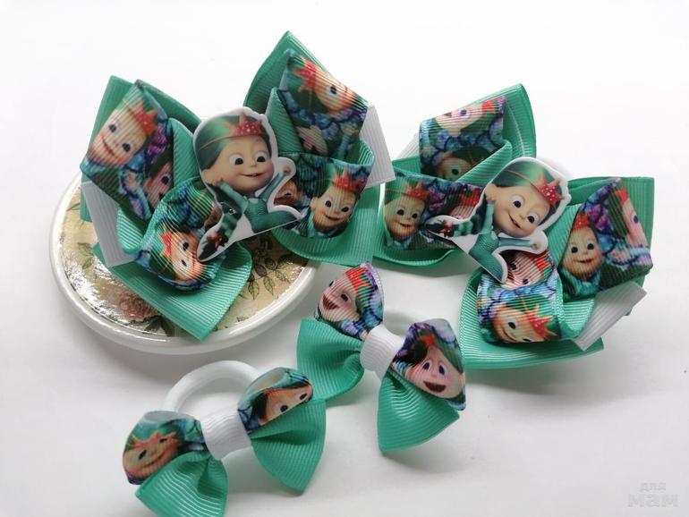 18) Фанатам мультика "Маша и медведь" набор из больших и малых бантиков. Цена 250р