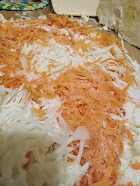 Только отлегло, как говорится "от задницы" я тут же организовала засолку капусты.