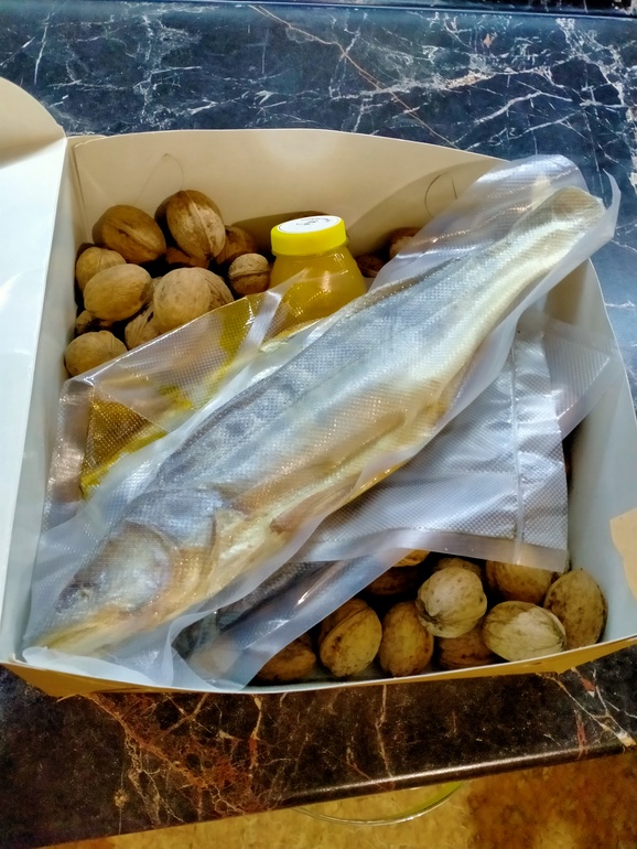 А ещё я заказала у Ольги вот такой подарок на 23 февраля своему мужу)). Рыбка и орехи. Так круто и красиво всё упаковано, что я не дождалась 23 его,и заранее подарила 🙈. Рыбку одну уже испробовали - обалденная 👍👍👍.