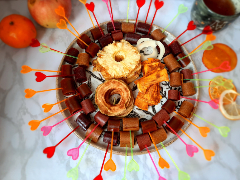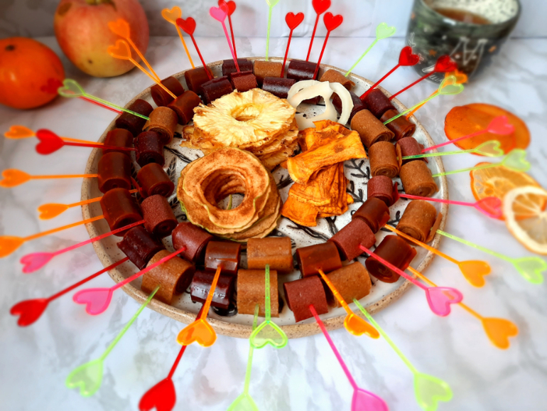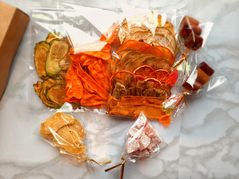 2) чипсы сладкие. Груша с мускатным орехом, Яблоко с корицей и мёдом, ананас, банан с ванилью, хурма, кокос, красный апельсин, тыква с мёдом и корицей.