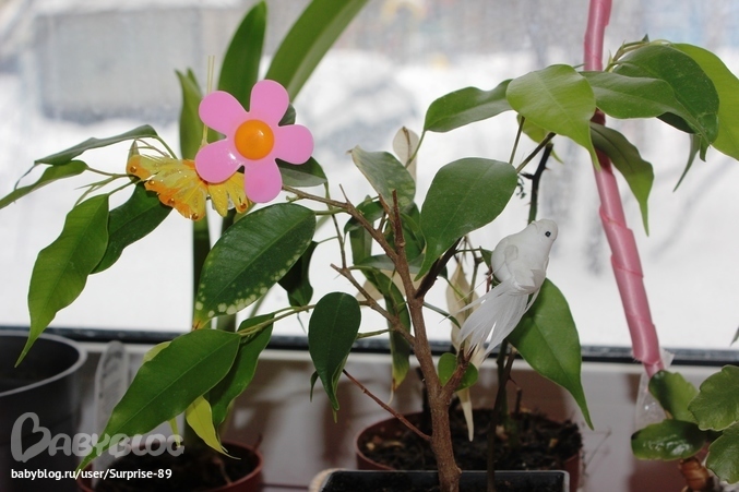 Фото с цветами, что главное? В горячую точку Вы поместили пластмасовый цветок. К чему птичка, ленточка и бабочка? Уберите цветок, ленточку, выровняйте птичку, уберите с заднего плана другие горшки, выключите вспышку, включите режим приоритета диафрагмы, исо 100 и пробуйте снимать с разных точек так чтобы Вам нравились Ваши же фотографии... Послушайте девочек и только потом идите сдавать ДЗ. ДЗ - не главное))) А еще нужно читать и читать все, что найдете о композиции, а горизонте, балансе белого, обработке и т.д., много снимать и впитывать критику как губка)))
