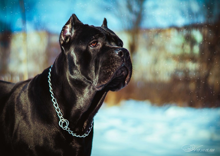 Тут цвет собаки "поплыл"... Натуральный корсо все таки должен быть черный :-)))А он стал коричневый...