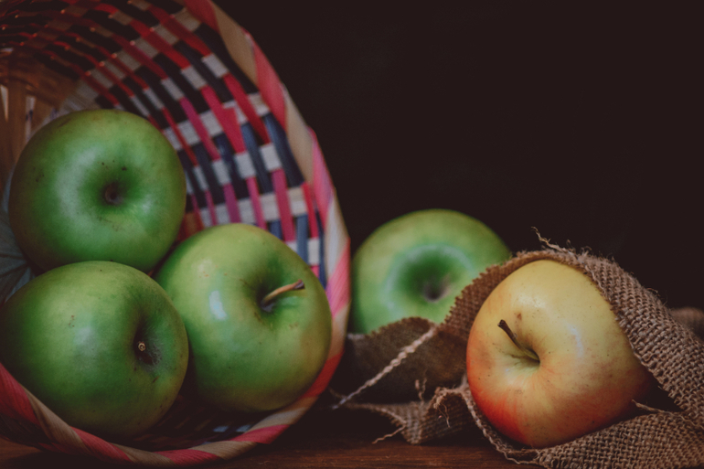 Мне нравятся фото, только вот на первой я бы прикрыла диафрагму, чтобы и корзина и зеленое яблоко вне корзины было в резкости.