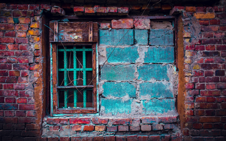 8. Непонятное окно в огромной глухой стене. Статика, перекрещивающиеся линии.