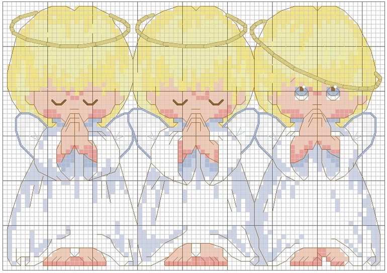 Я вышивала слева направо, т е сначала одного с закрытыми глазками, потом тот, который посередине и потом ангелочка с открытыми глазками)