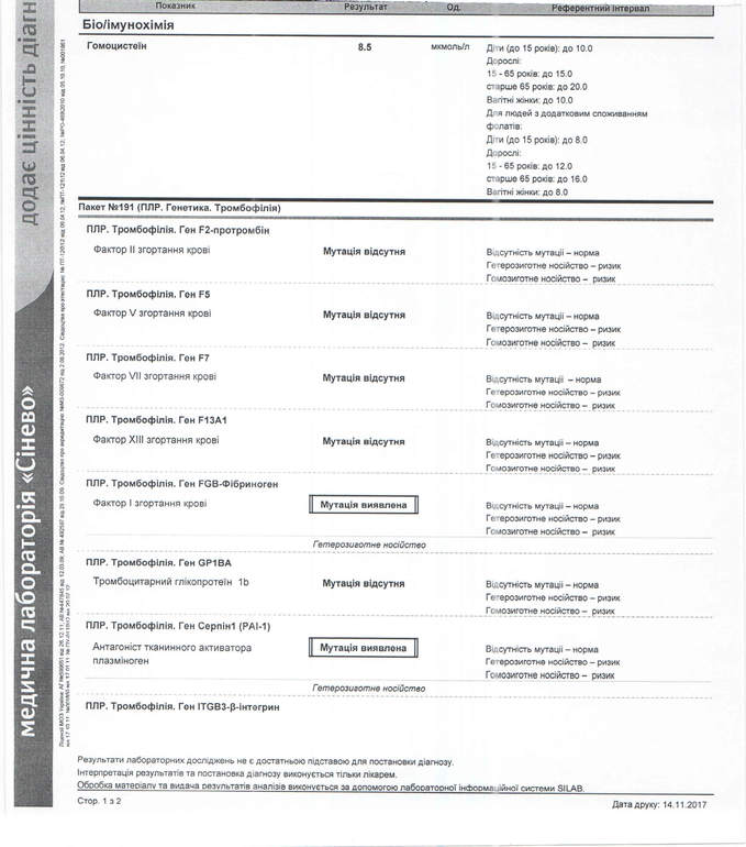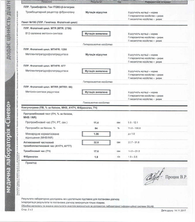 по тромбофилии все норм, гетеро это не опасно, а вот по фолатному есть поломки гомо, от этого и гомик повышен - нужно фольку и В12, В6 принимать в активной метилированой форме, я с айхерба беру. Питание нормализовать - мне гематолог советовала курицу и творог разделать на два дня, т.е. не в один прием пищи много белоков+ физ.активность.