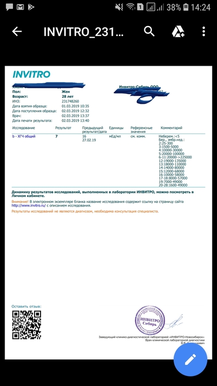 Да я год приводила себя в порядок. В голове навела порядок. Раз заберем. Все успокоилась. Пошла хгч сдала. Все хорошо. Чую тянет живот, ладно думаю так наверное надо. Пошла еще сдала хгч и бац месячные на след день и все... и меня накрыло опять...