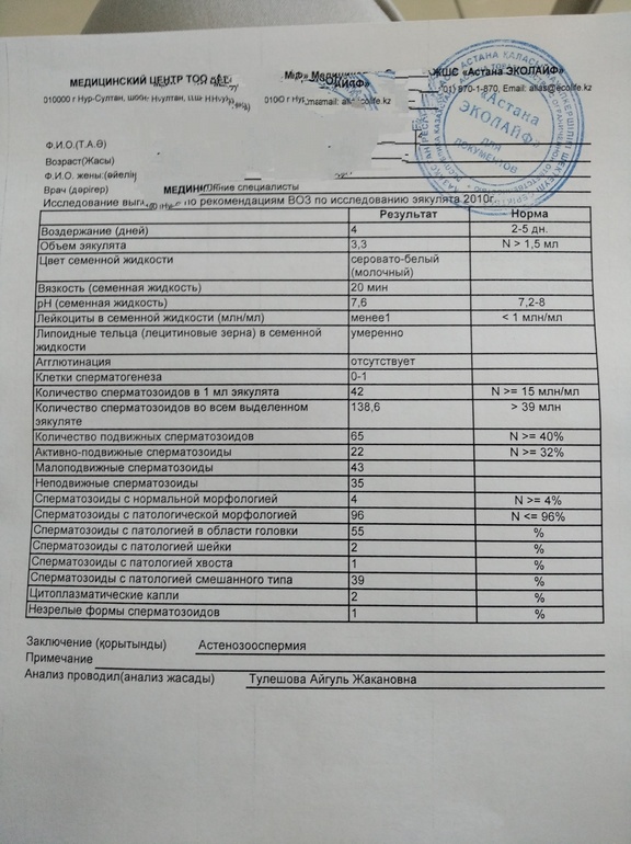 свежая спермограмма мужа после лечения. Что может е сказать? Как можно поднять подвижность