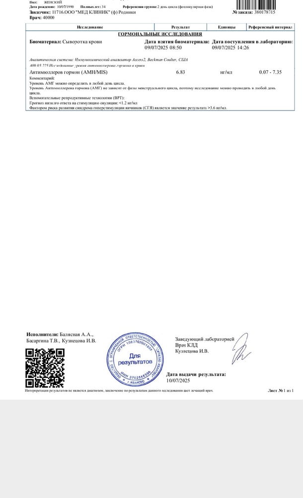 Ирина, если бы вы знали свой АМГ лет 10 назад, было бы проще анализировать. А так, без привязки к динамике - норм. (У моей 18-летней дочери АМГ 8 с копейками ) Но в любом случае нужна консультация эндокринолога, чтобы исключить патологии, маркерами которых являются отклонения гормонов от нормы. Ну и исключить СПКЯ.