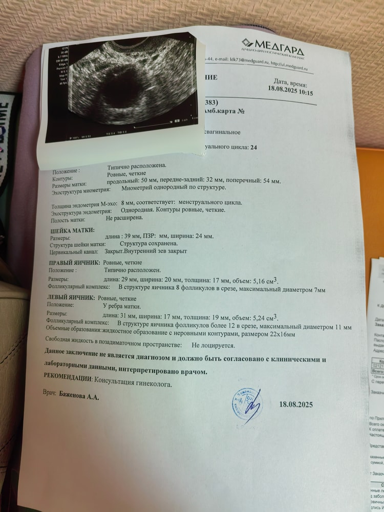Здравствуйте девочки прям крик души!я после операции 25.06.25 Пошла я значит на 14дц был фолликул 11мм в левом яичнике сказали овуляцию не жди.думаю ладно. Записалась к гинекологу эндокринологу и думаю узи за одно сделаю что и как там. Начала она меня смотреть датчиком говорит есть доминантный фолликул 18-19мм овуляции ещё не было. По итогу вижу в протоколе узи не слова об доминантным фолликулле. Позвонила в клинику объяснила ситуацию. Сказали завтра перезвонить что бы с доктором переговорить. Кто нибудь можете сказать что в итоге по узи у меня. 😔😔😔