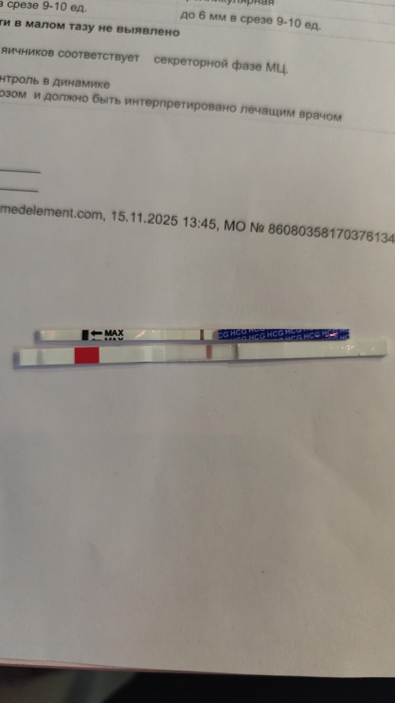 Тесты делала с 8 по 11 ДПО, были кристально чистые. На 12 ДПО сдала хгч. Результат 1. Приняла тот факт, что в этом месяце пролет, и стала задумываться о стимуляции в следующем цикле.